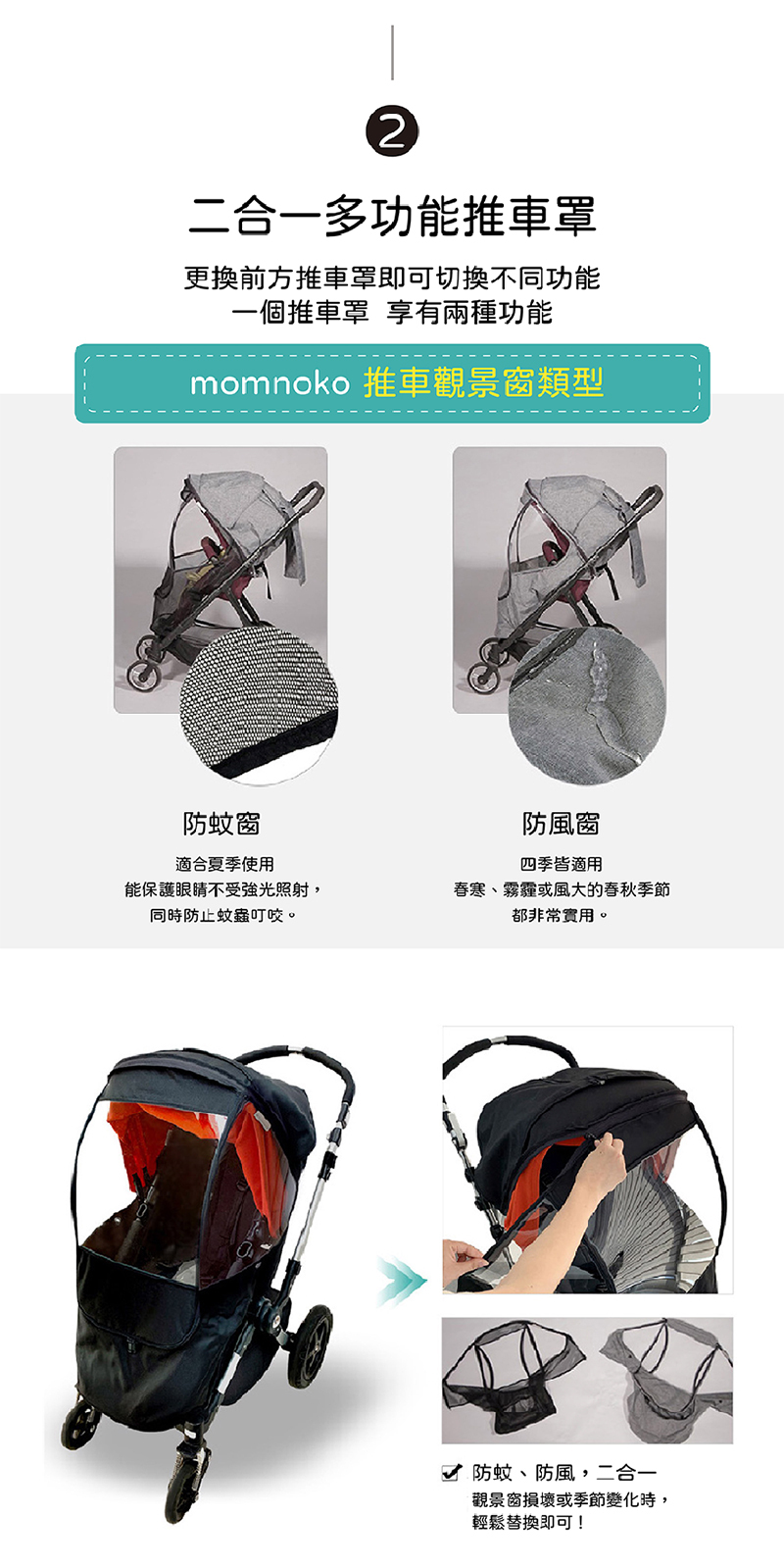◎ 首創可拆式推車罩,防風防蚊二合一