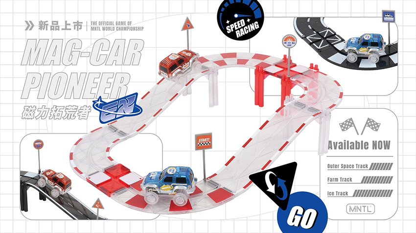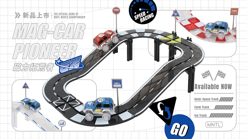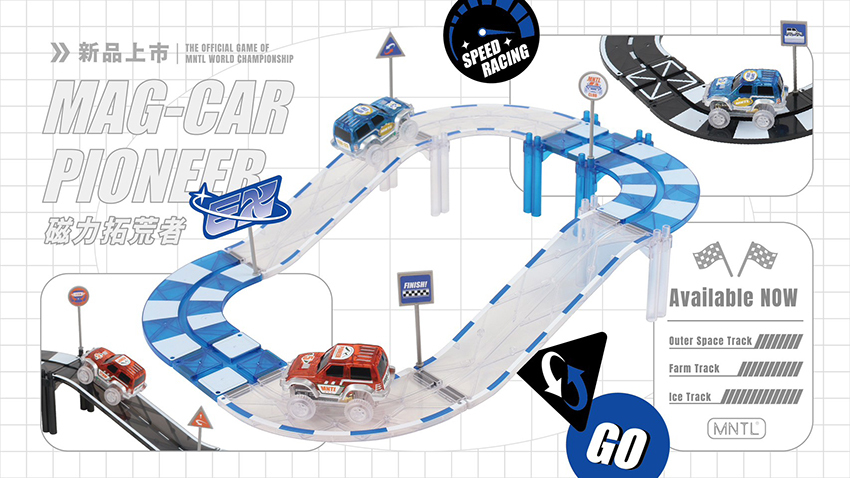 不同傳統的平面軌道,磁力拓荒者可以組出具有高低落差的立體賽道,