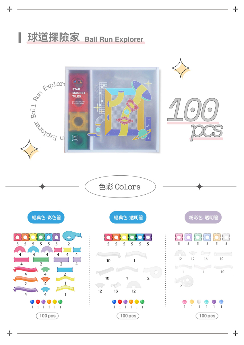 【MNTL】磁力積木 / 球道探險家組合 Ball Run Explorer ( 經典透明 100pcs )