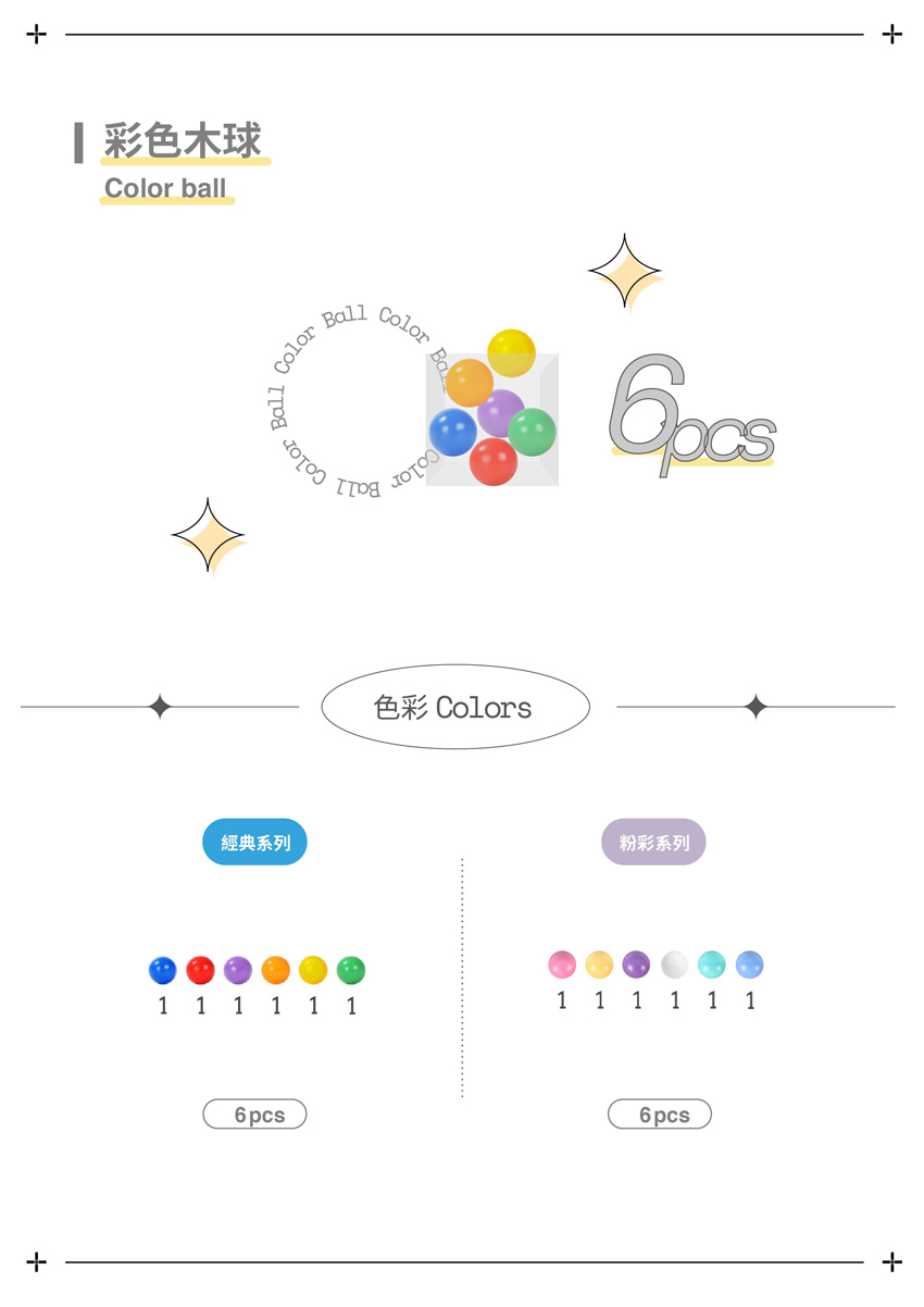 【MNTL】磁力積木/磁力片配件 | Color Ball 彩色木球 6pcs - 經典/粉彩