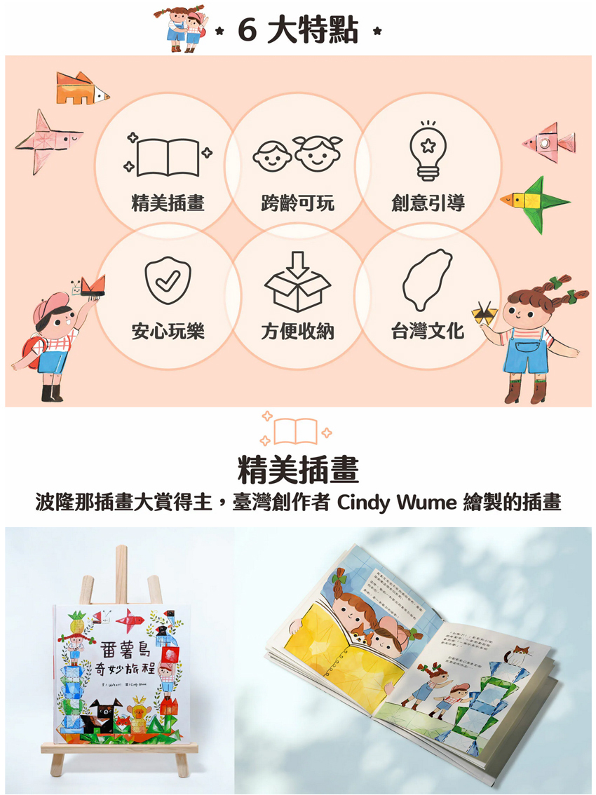 隨著故事場景變換,引導孩子創建出臺灣獨特的景物。
