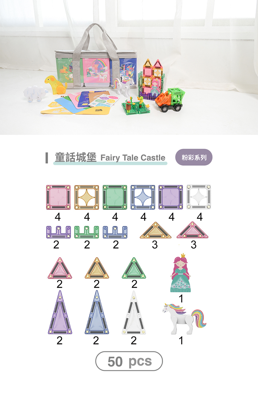 ※此組合為小小磁力建構片,為常規尺寸的1/4、厚度皆為0.7cm,大小磁力片一起玩更好玩。