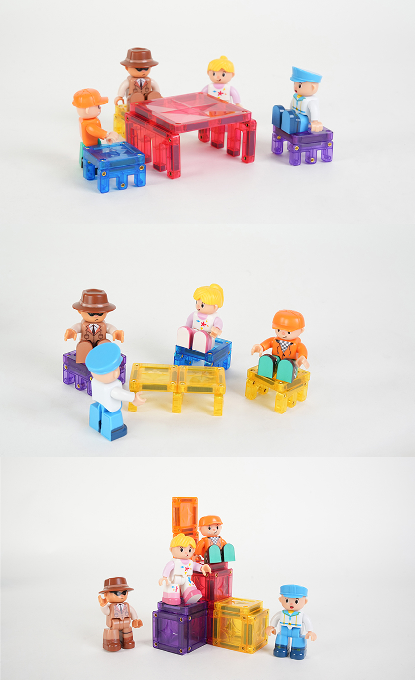 腳底部含有磁鐵,可以放在磁力片上一起玩唷!
