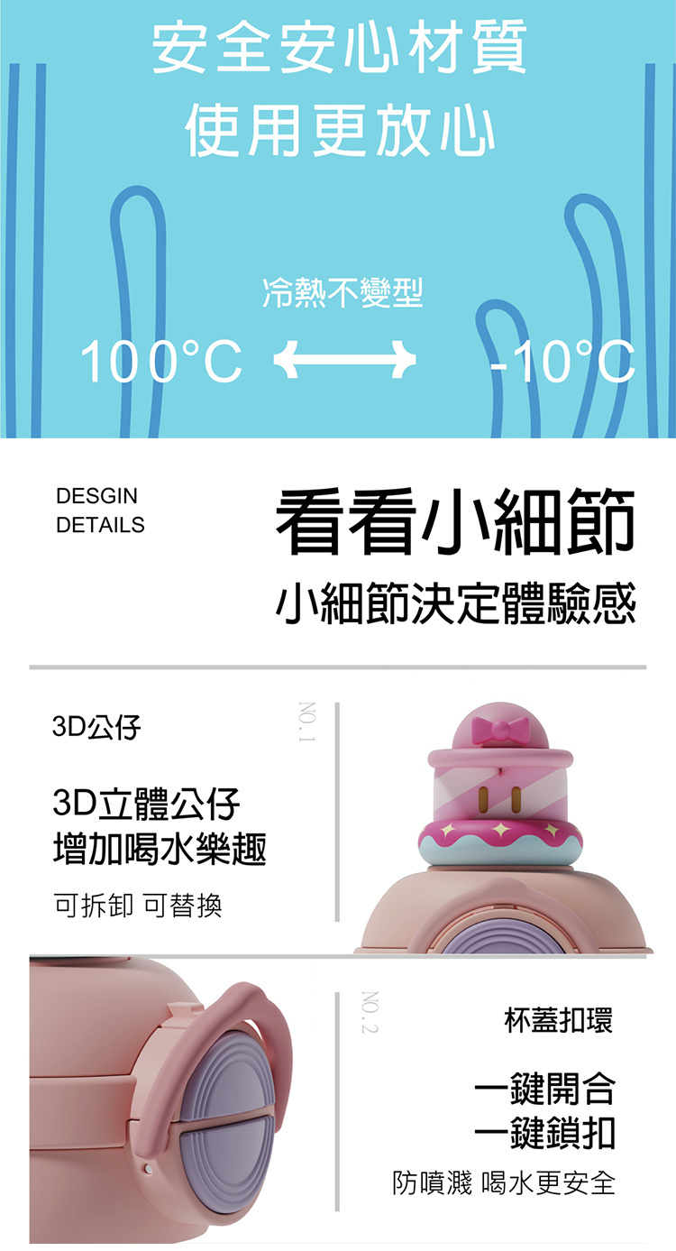 ◆ 可拆卸可愛公仔造型 增加喝水樂趣