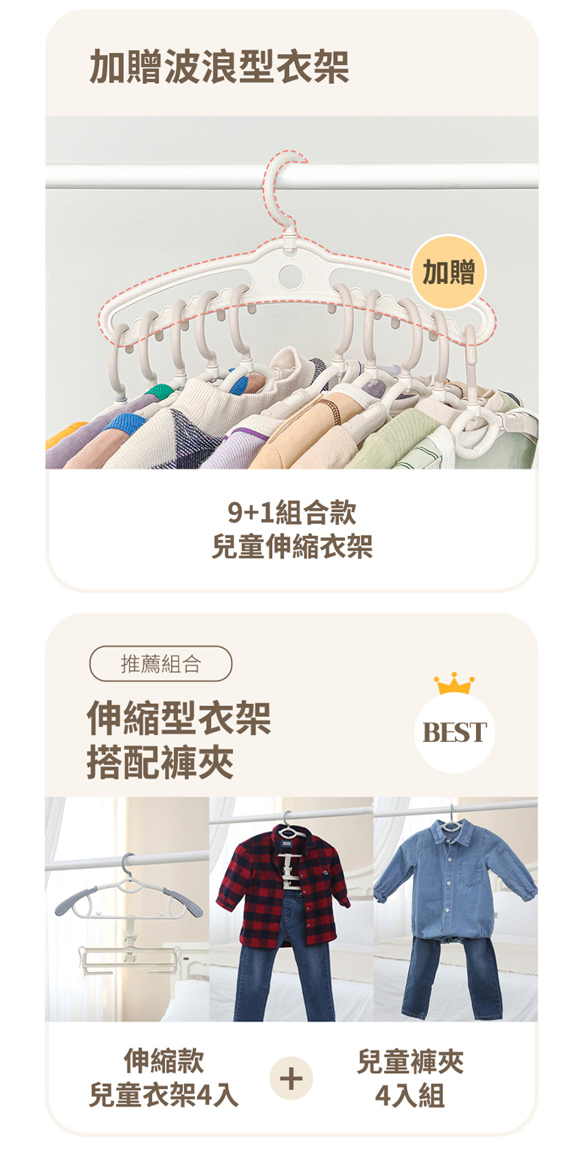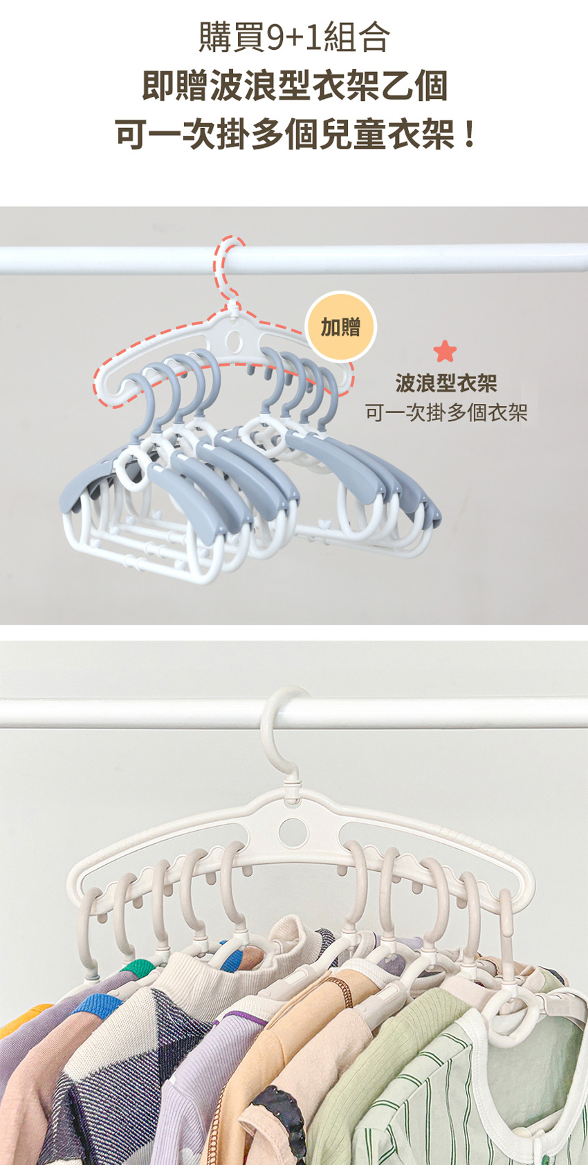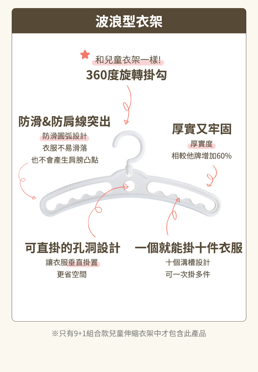 ▲每組 含9個伸縮衣架+1個槽溝衣架