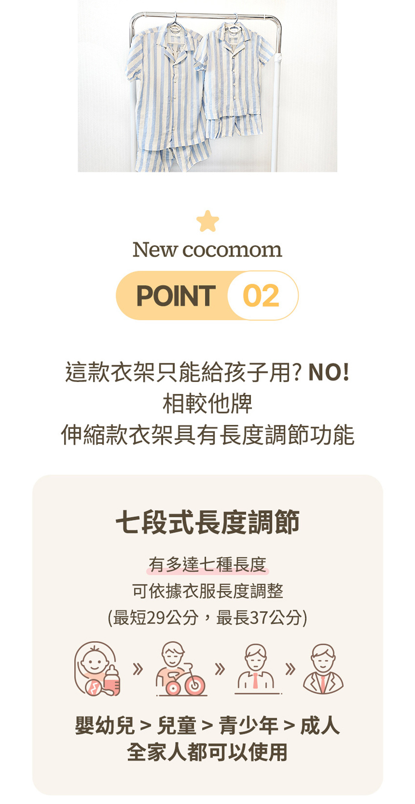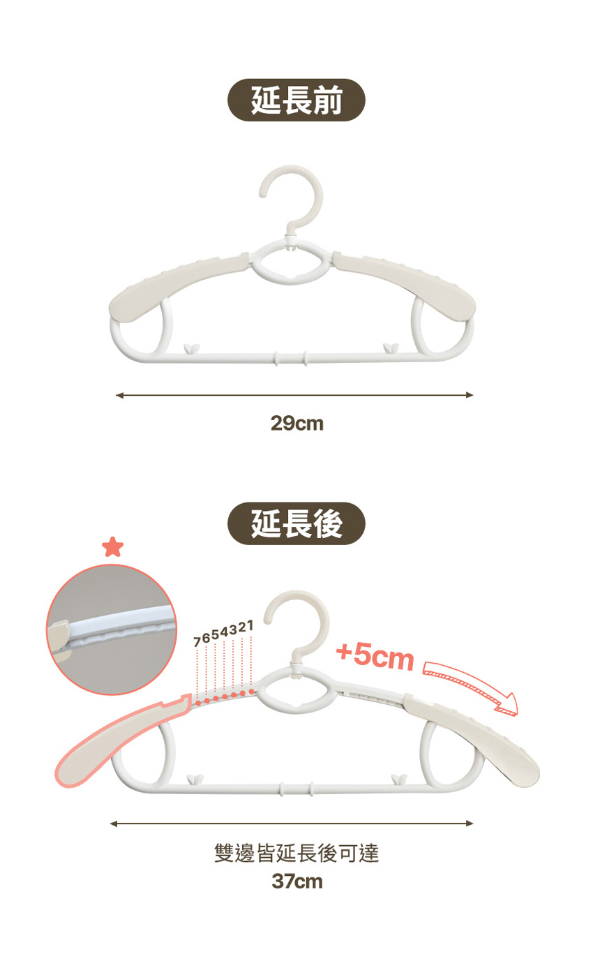 ▲七段式可調整長度 符合各款衣服大小