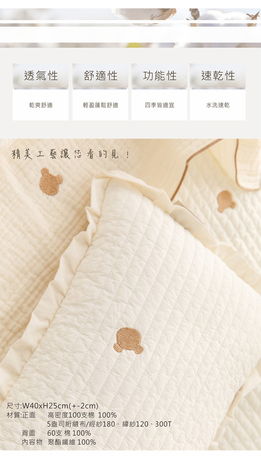 材質:正面-高密度100支棉 100%、5盎司絎縫布/經紗180、緯紗120、300T