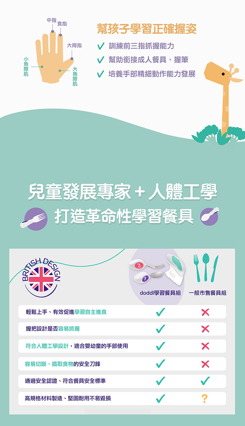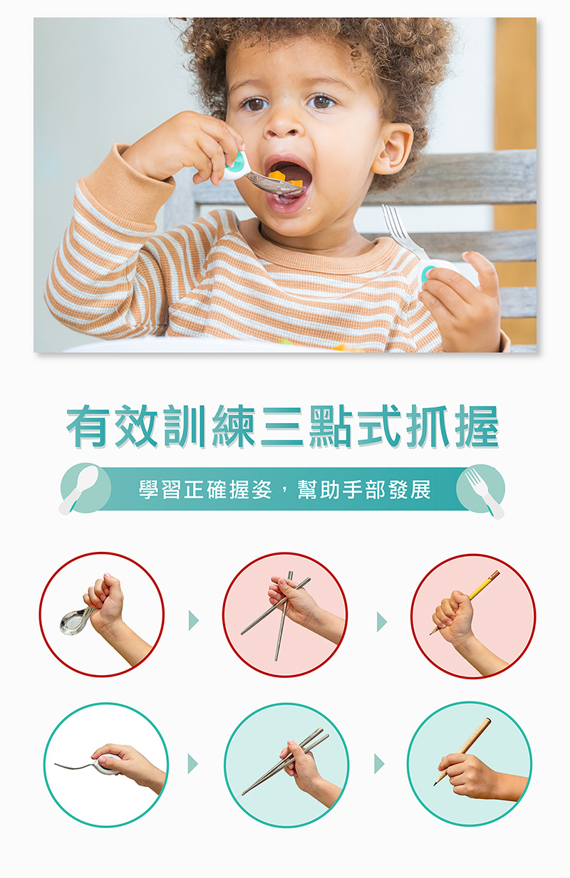 ★ 訓練手部抓握能力,輕鬆過渡至成人餐具
