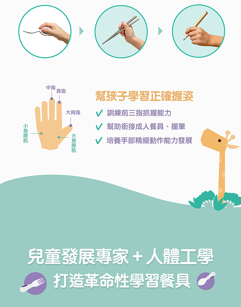 ★ 訓練手部抓握能力,輕鬆過渡至成人餐具