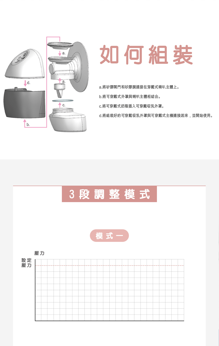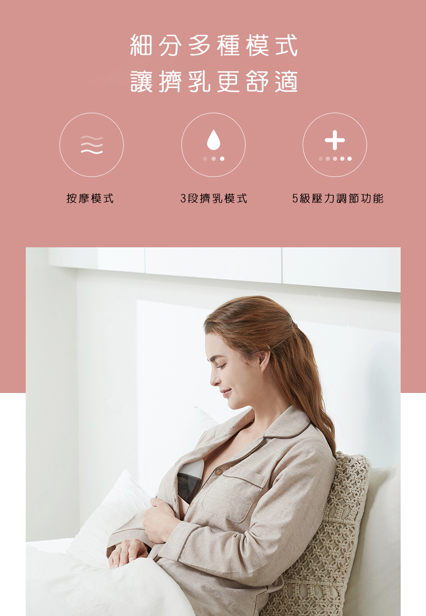 ▲三種按摩/吸乳模式,五段吸力調整