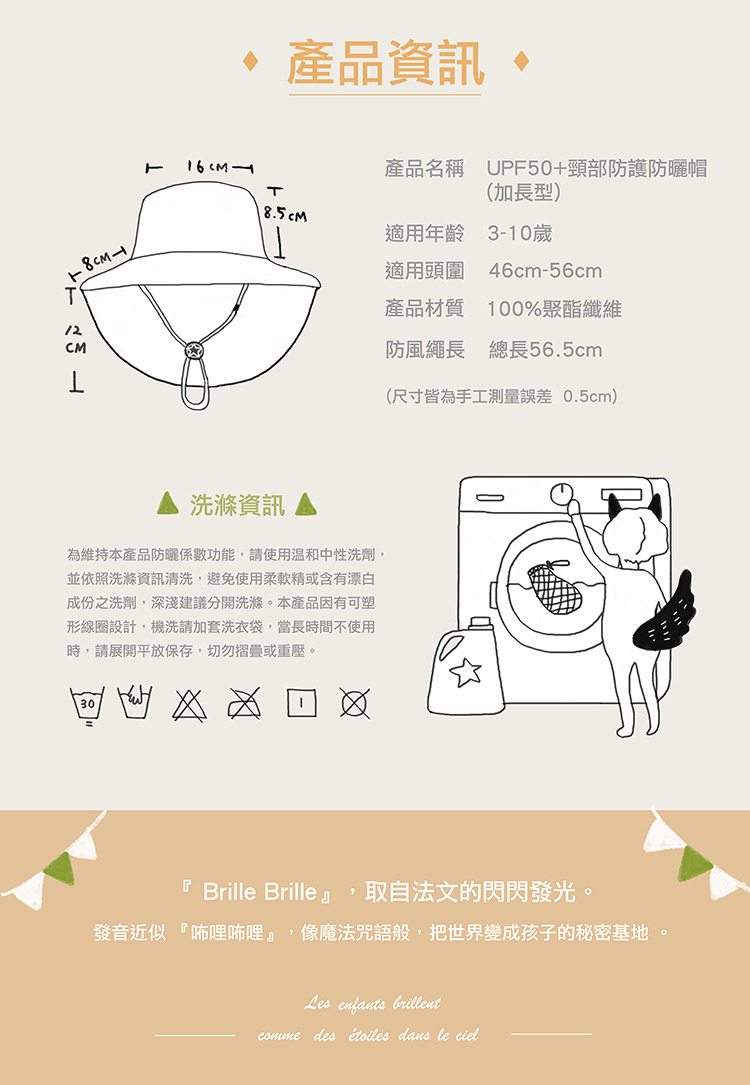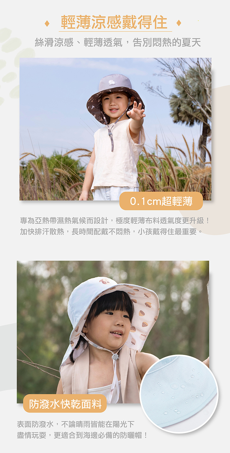 ⭐ 尾巴加長20cm護頸,低頭玩沙加強脖子防曬