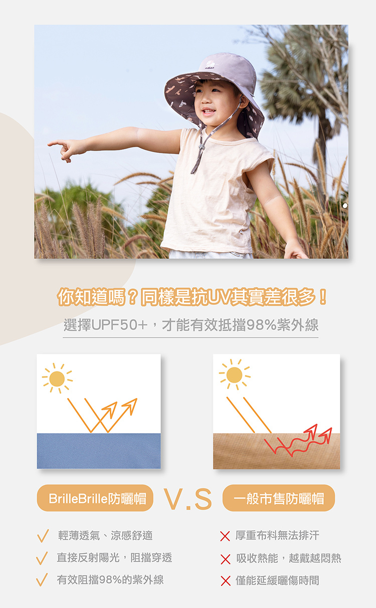 ⭐ UPF50+防曬檢驗合格有效阻擋98%紫外線