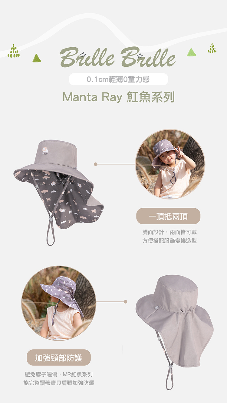 【Brille Brille】兒童防曬帽 魟魚系列Manta Ray 頸部防護 加長型-荒原歷險記