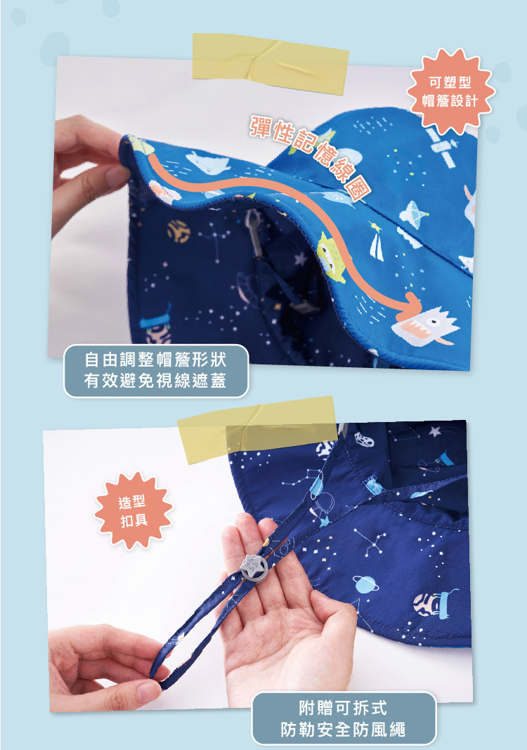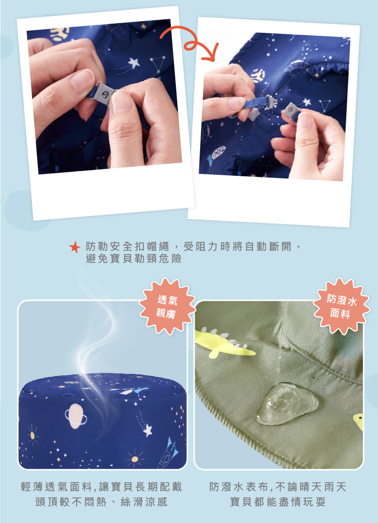 附贈配件:可調節式防風繩(含防勒頸自動斷開安全扣功能)