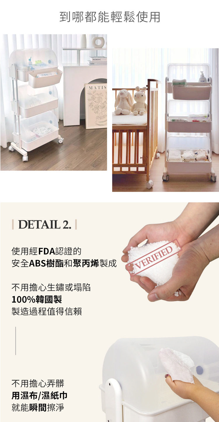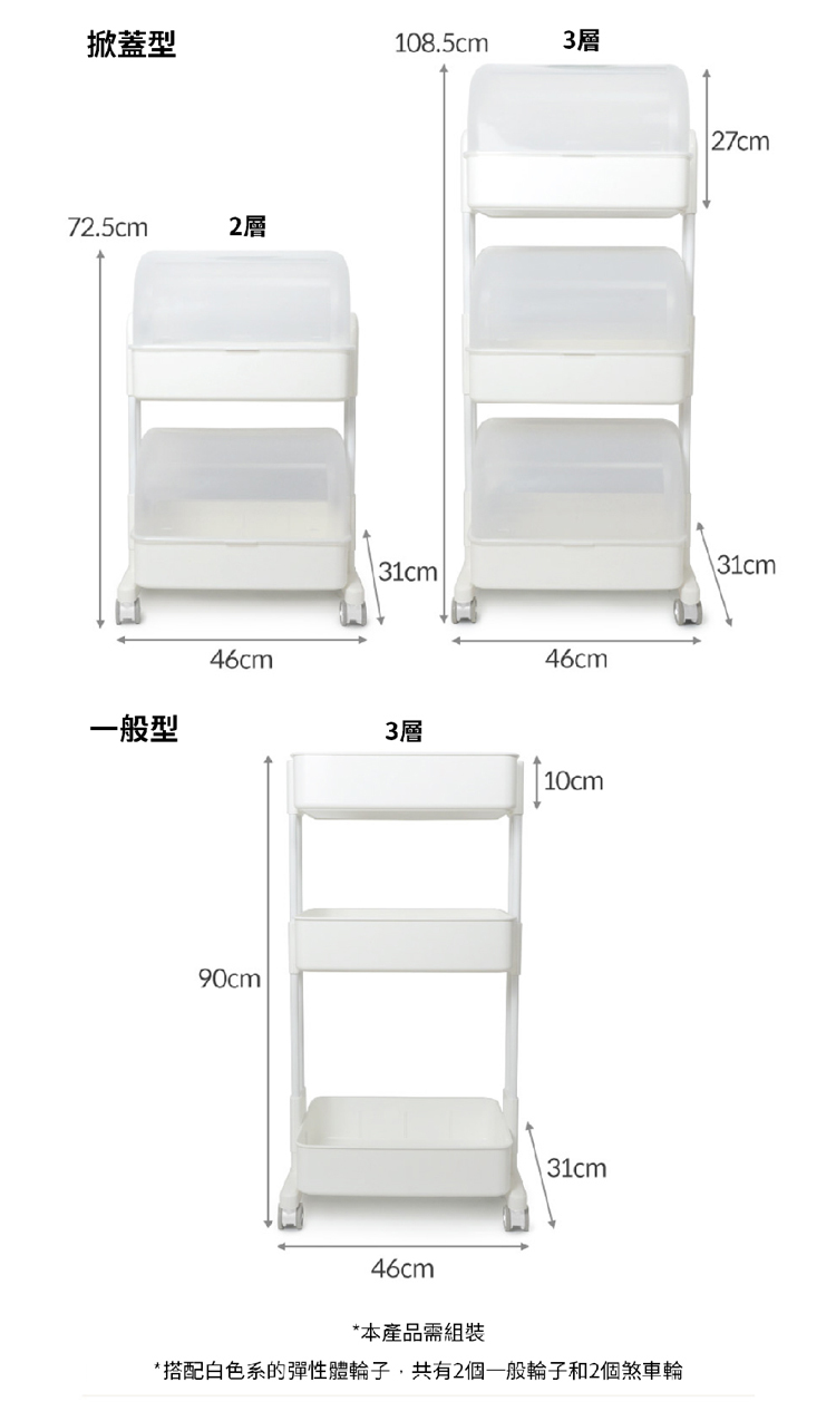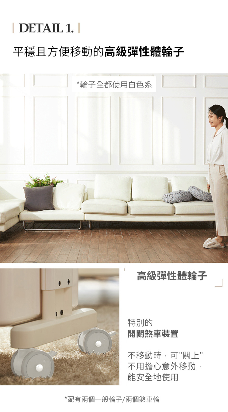 *搭配白色系的彈性體輪子.共有2個一般輪子和2個煞車輪
