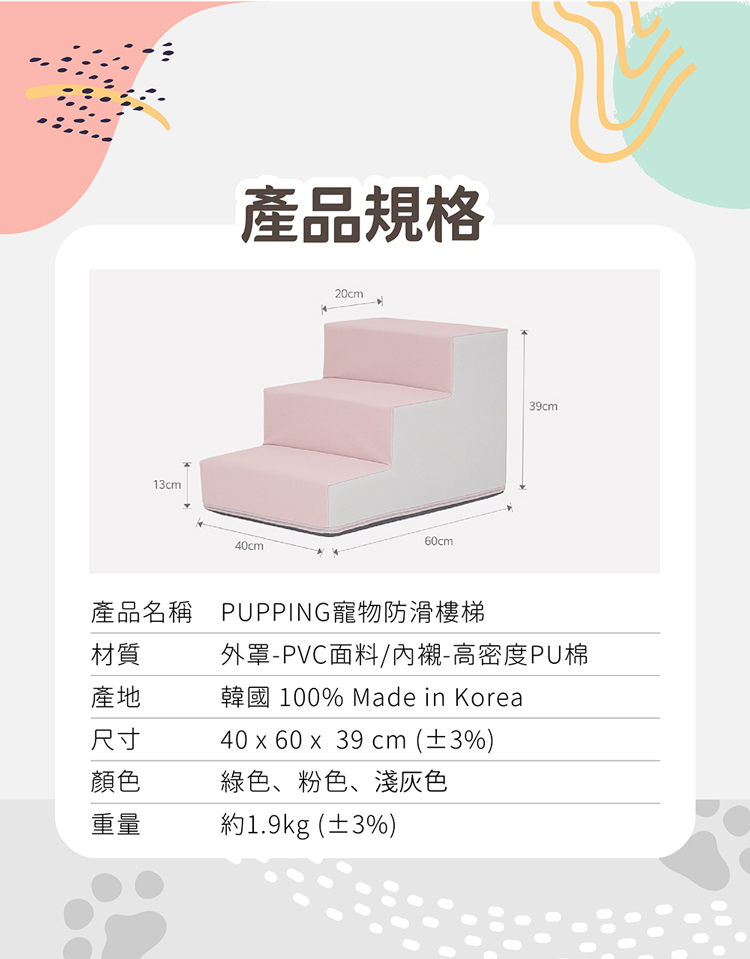 【PUPPING】韓國寵物防滑樓梯 - 粉色