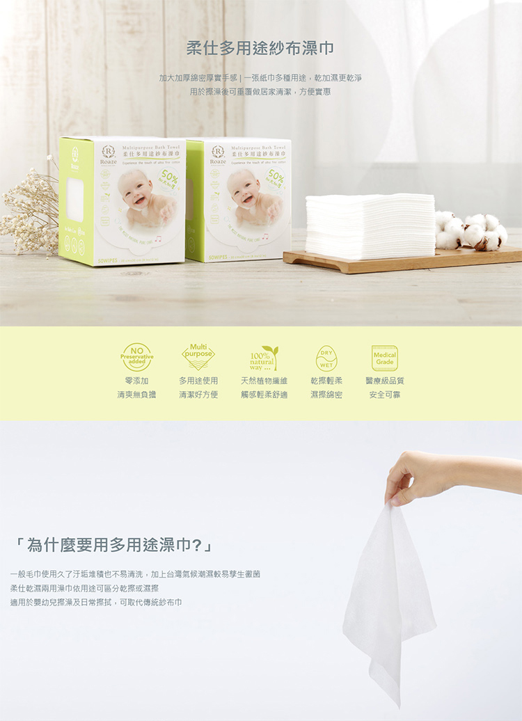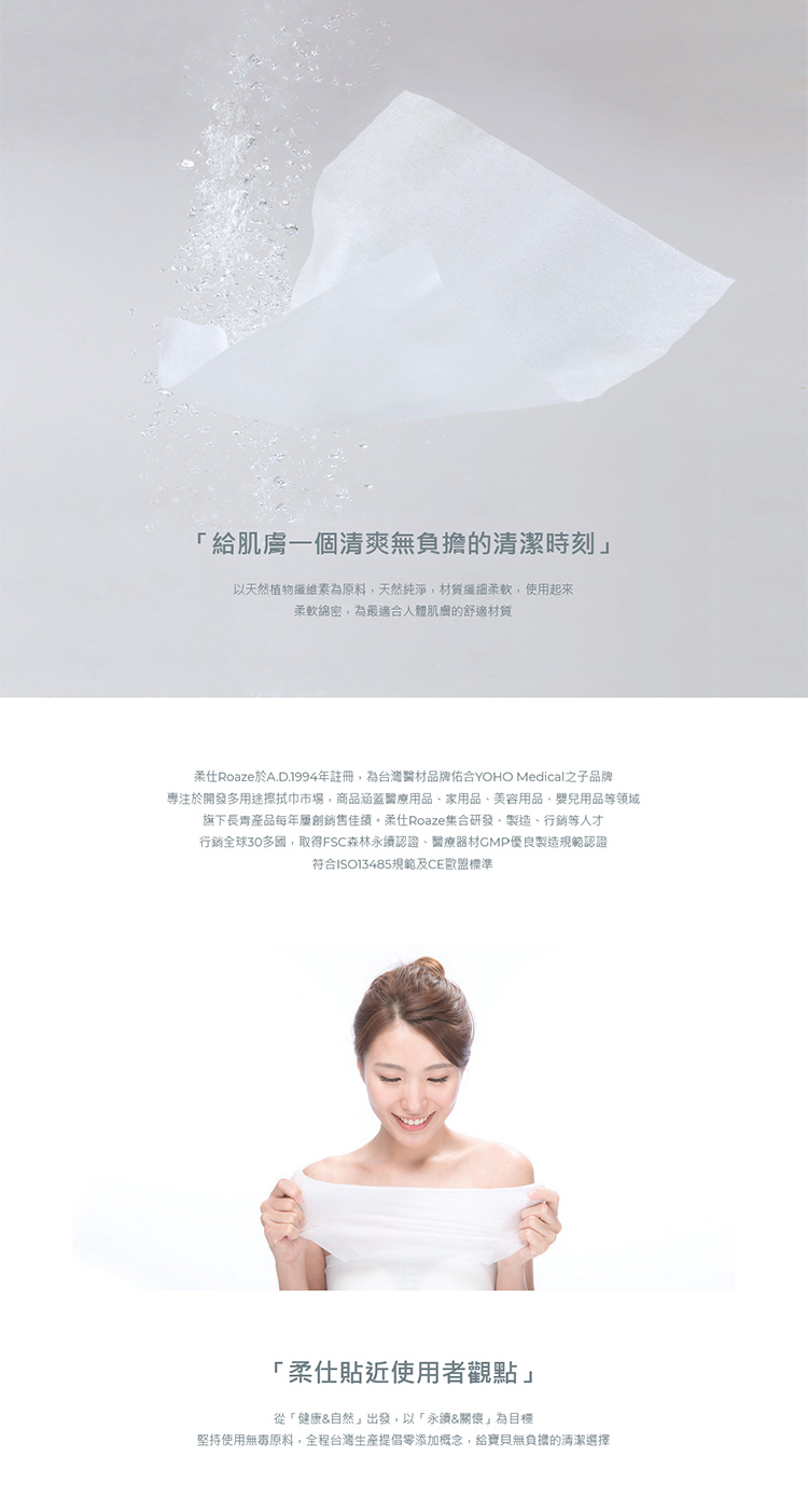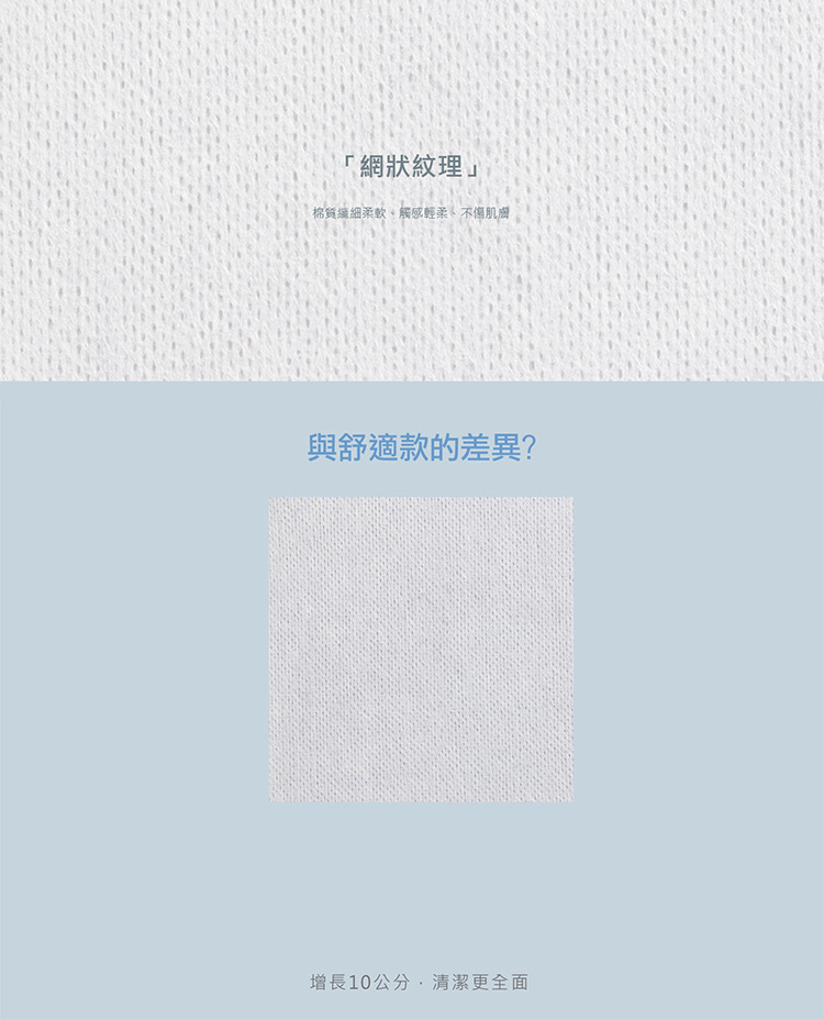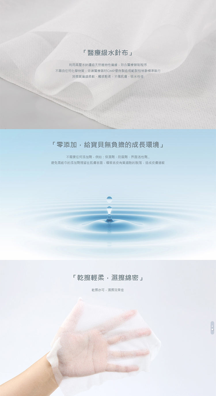 * 採用100%天然水針布,柔軟親膚
