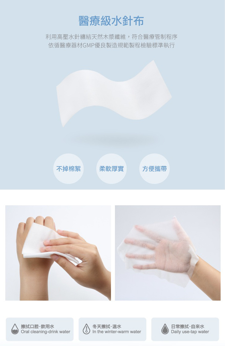 ★ 採用100%醫療級水針布、天然純淨,不含螢光劑、香精