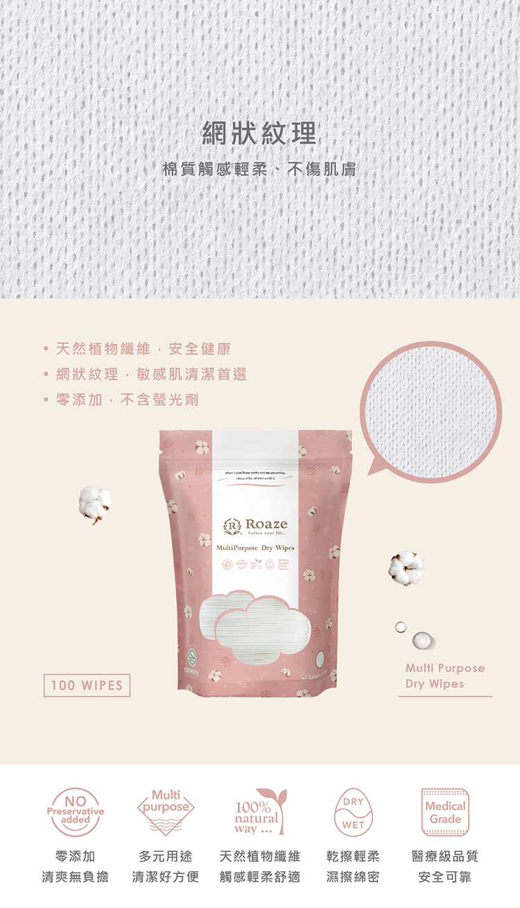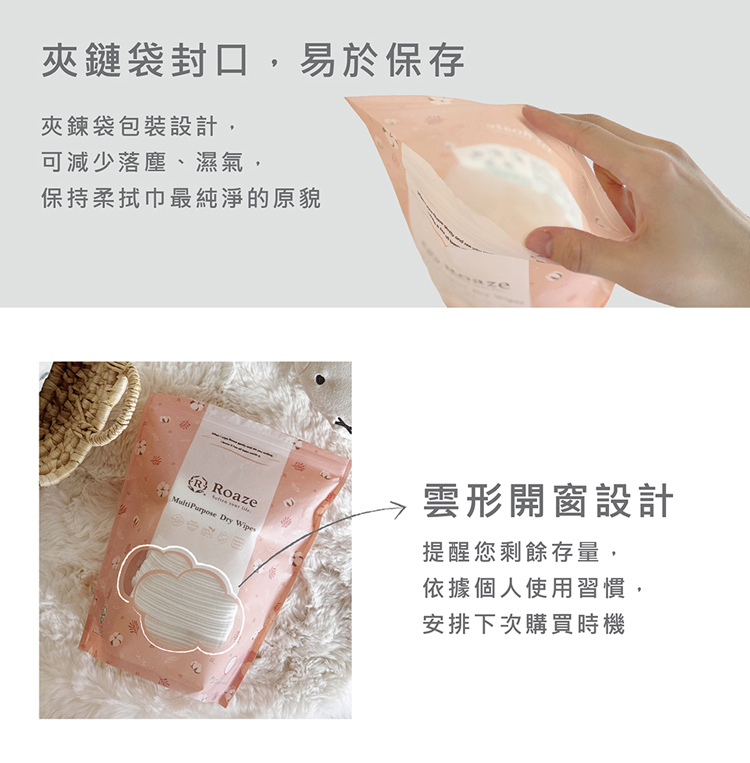 【Roaze 柔仕】MIT乾濕兩用洗臉巾 - 舒適款 100抽 X 10 袋