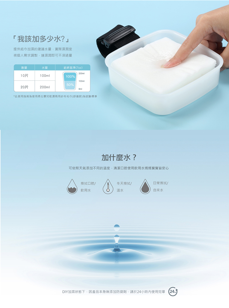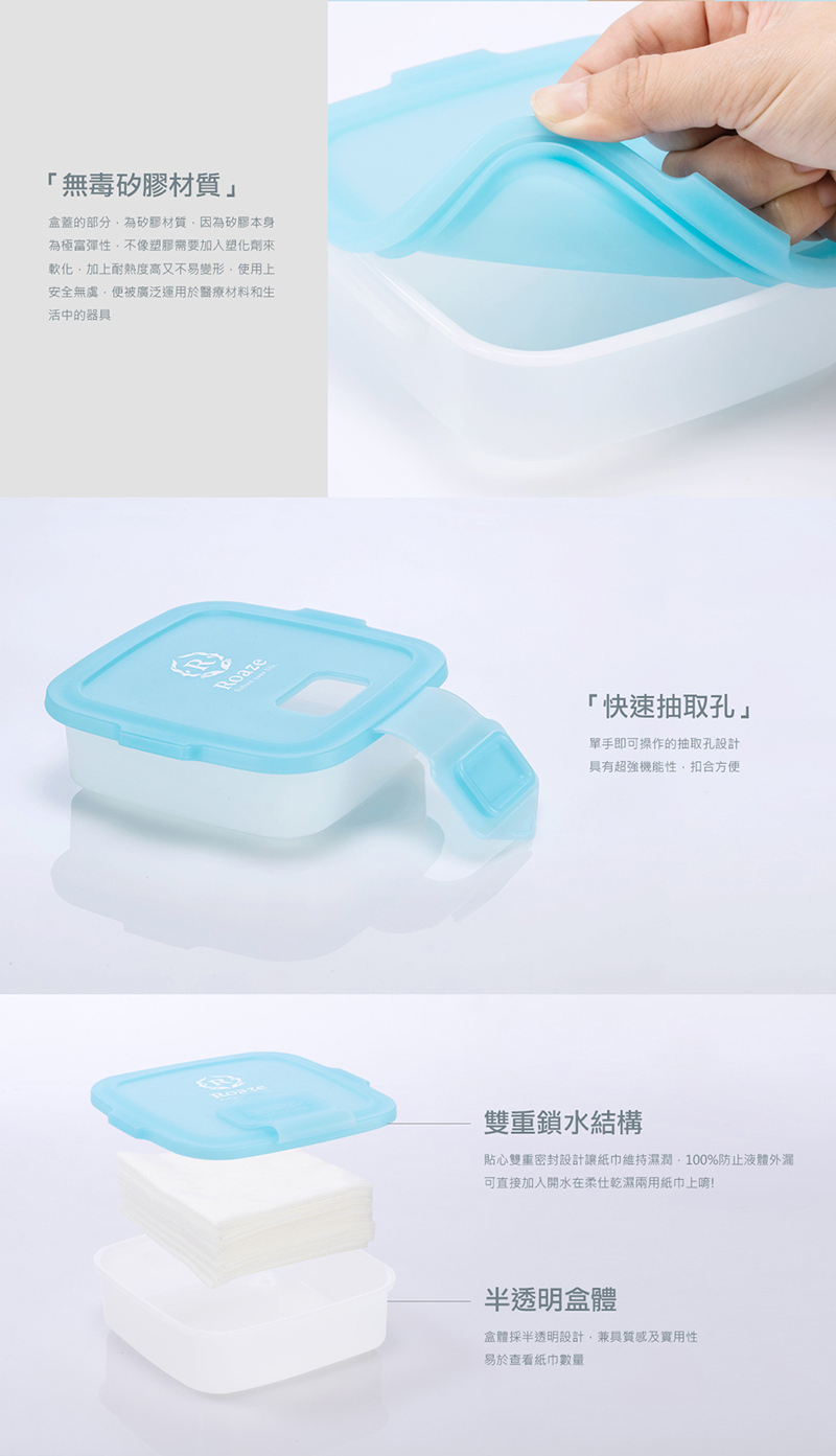 ✿雙重鎖水結構-密封設計讓紙巾維持濕潤,防止液體外漏
