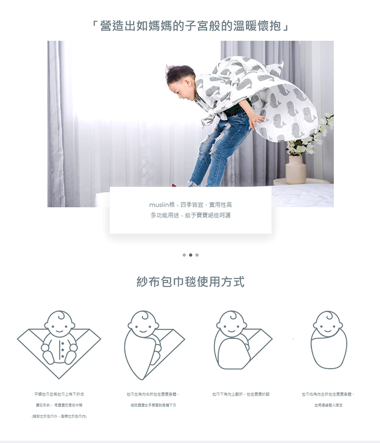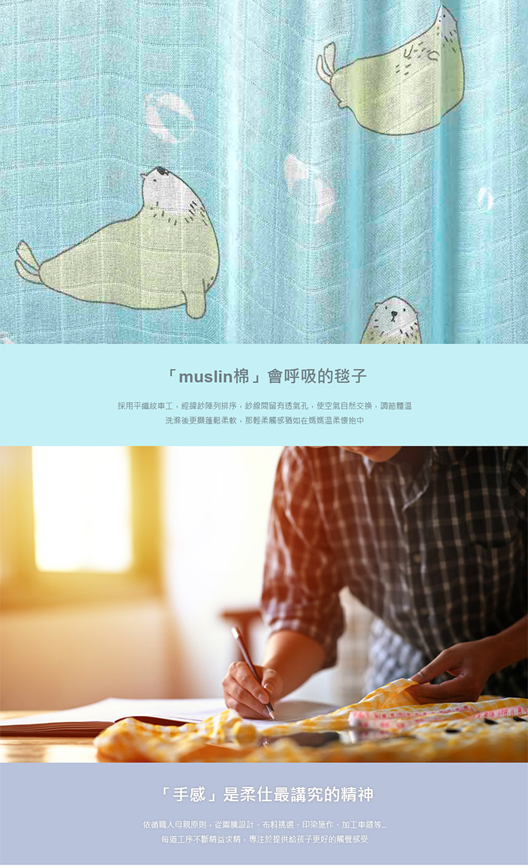 ◎ 採用muslin棉布,細緻柔軟,透氣性高,可調節體溫