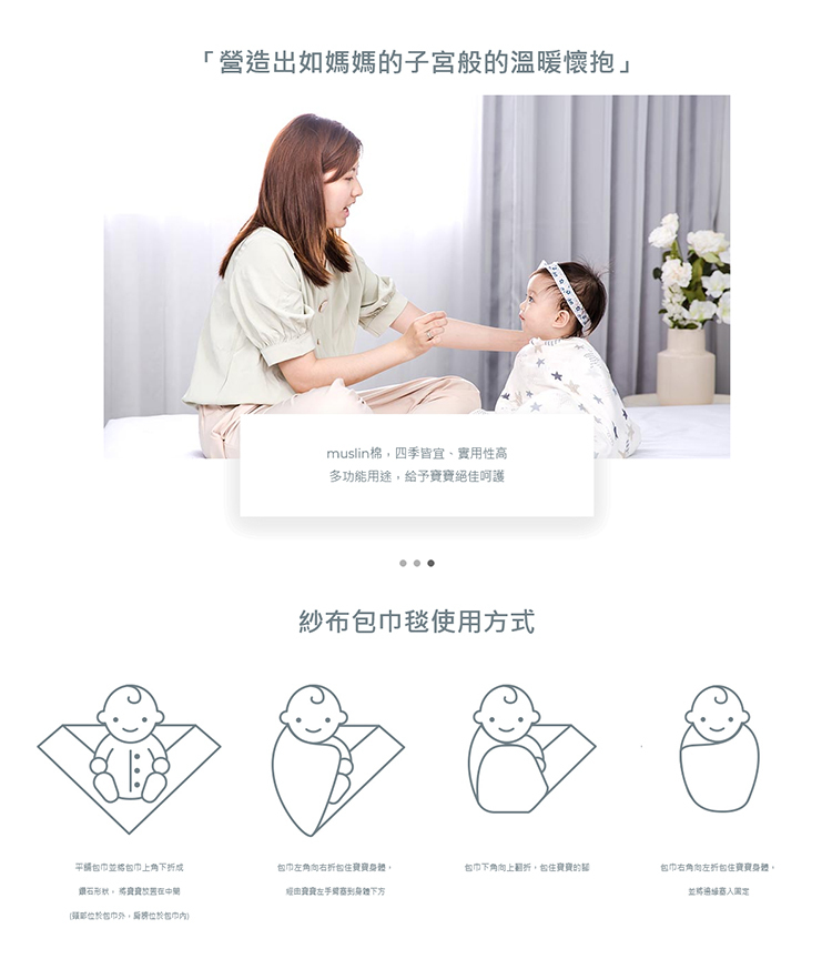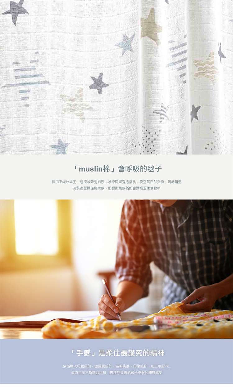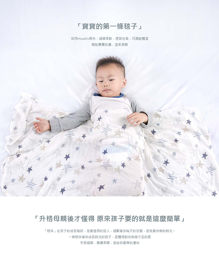 ◎ 採用muslin棉布,細緻柔軟,透氣性高,可調節體溫