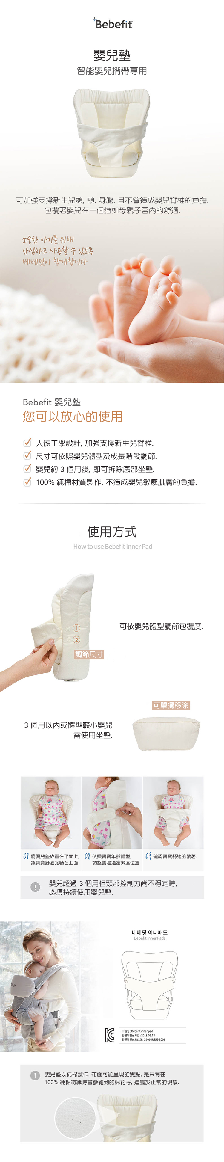 適用:智能嬰兒揹帶專用 (嬰兒 0 - 6 個月以內或頸部發育穩定度不足以前,請搭配智能揹帶使用)