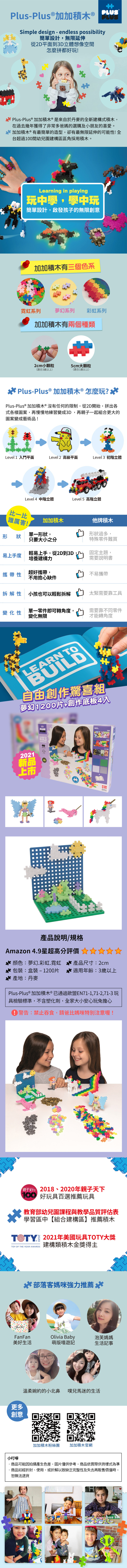 ◆ ‧每塊積木上都有Plus-Plus註冊字樣